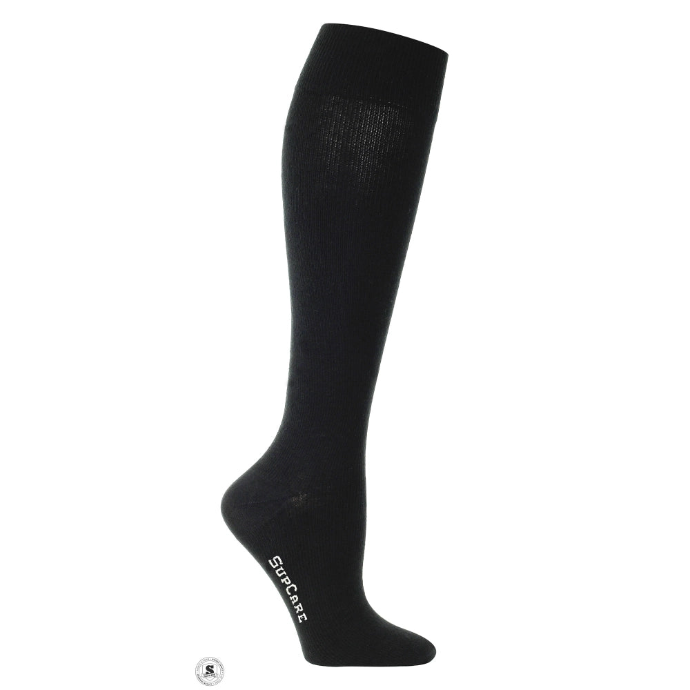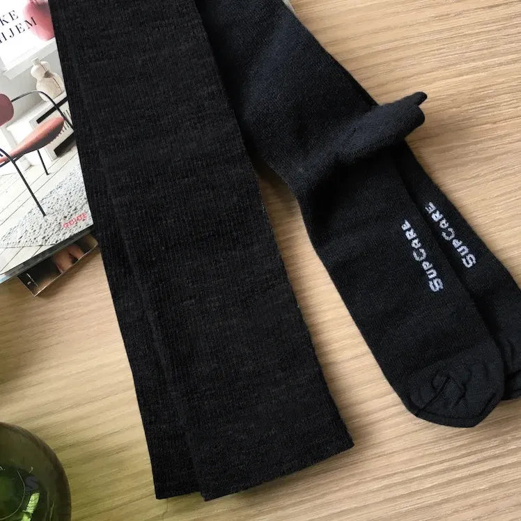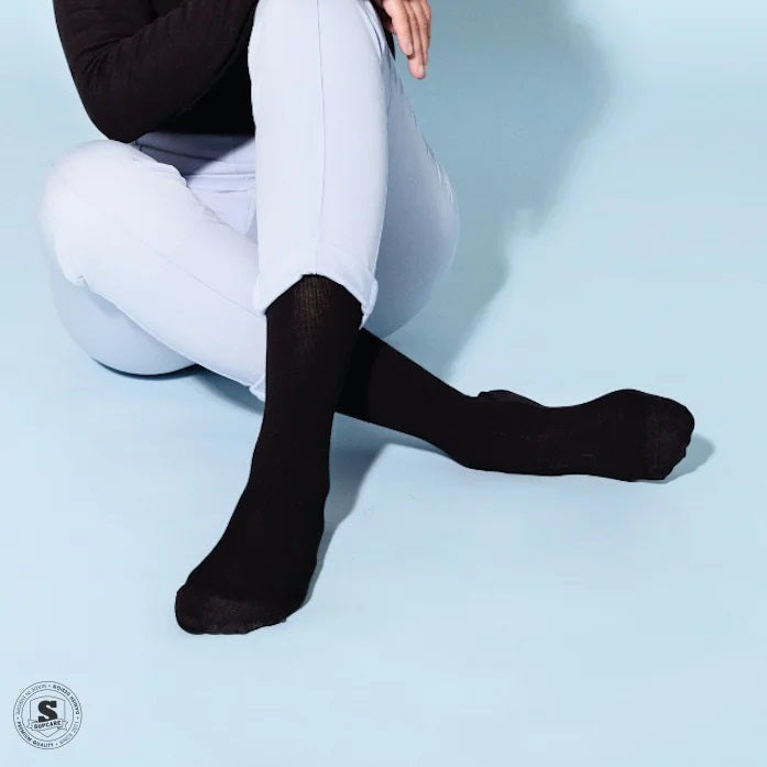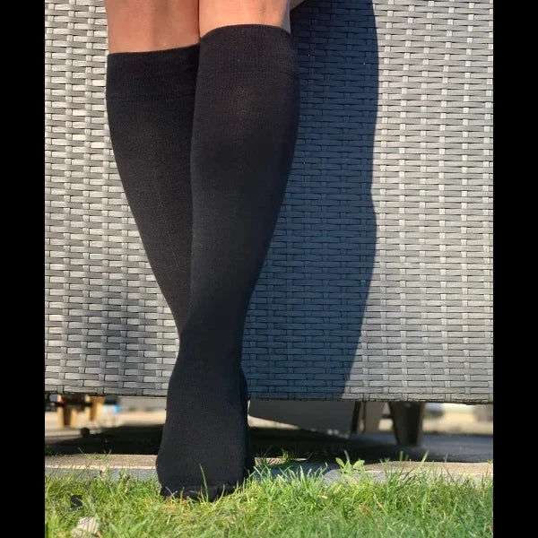 Bløde og komfortable knælange støttestrømper i uld, der giver behagelig kompression og holder dine ben friske hele dagen. Den tynde kvalitet gør dem velegnede til brug året rundt – både til hverdag og ved behov for ekstra støtte.