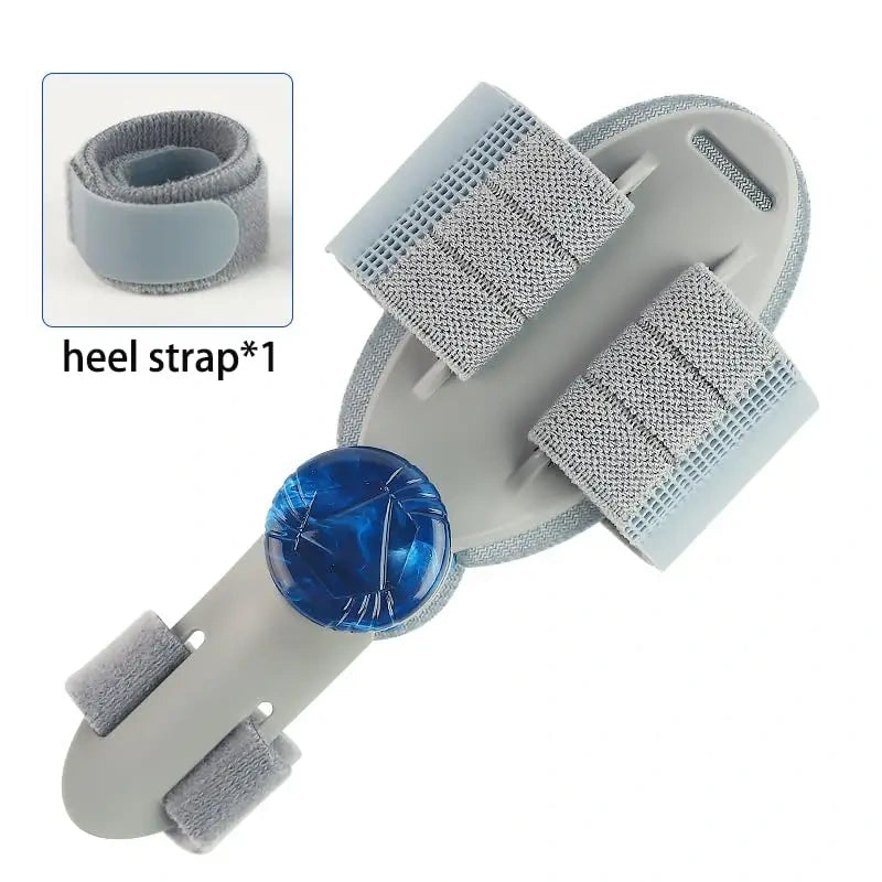 Løsn remmene og placér foden på fodpladen, så silikonepuden ligger over knysten. Fastgør fodremmen over mellemfoden og hælremmen for ekstra stabilitet. Træk tåtremmen rundt om storetåen og fastgør uden at klemme. Drej hjulet, indtil du mærker et let til moderat træk – det må ikke gøre ondt. Start med 10–15 minutter i hvile og øg gradvist til 30–60 minutter, hvis det føles behageligt.
