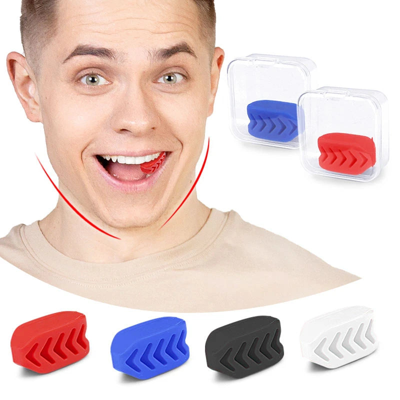 Kæbetræneren er fremstillet i slidstærk og fleksibel silikonegel, som giver modstand under sammenbid og dermed aktiverer musklerne i kæbe, kinder og underansigt. Ved regelmæssig brug kan den bidrage til øget muskeltonus og en mere markeret ansigtsprofil. Den kompakte størrelse på 4,7 × 4,4 × 2,1 cm og en vægt på 60 gram gør den nem at håndtere og ideel til både hjemmebrug og træning på farten. Det medfølgende etui hjælper med at holde produktet hygiejnisk mellem brug.