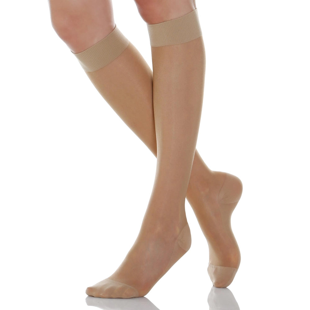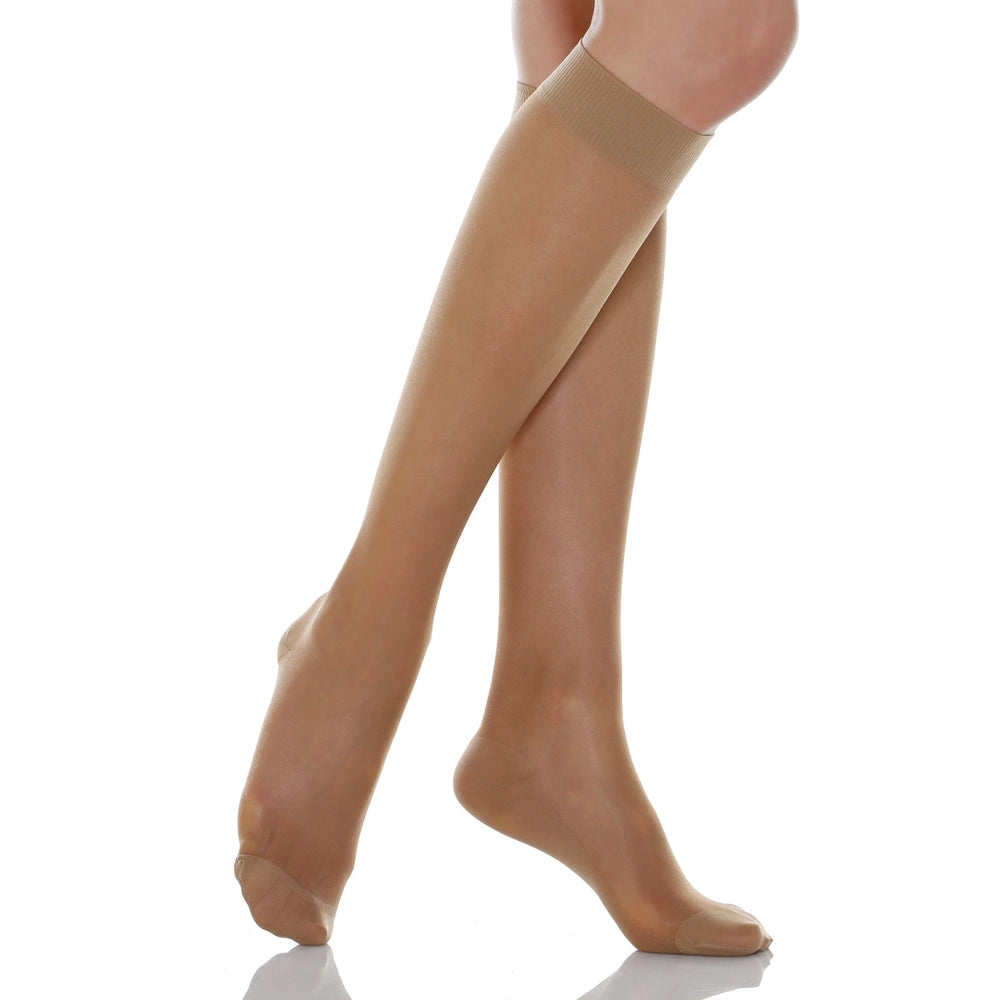 Knælange støttestrømper med mild kompression til dig, der ønsker at forebygge åreknuder og mindske trætte eller hævede ben efter en lang dag. Perfekte til arbejde, rejser og som komfortable flystrømper.