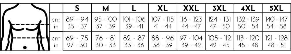 5XL: Bryst 140–147 cm / Talje 121–128 cm