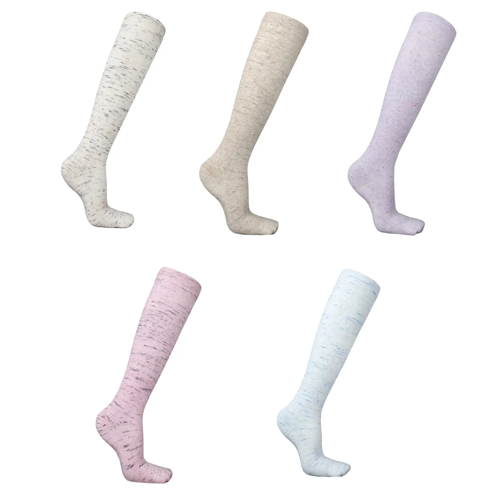 Denne 5-pak er ideel til dig, der bruger støttestrømper hver dag og ønsker både variation og værdi for pengene. De melerede nuancer – lyseblå, beige, lilla, rosa og grønbrun – giver et stilrent og alsidigt udtryk, der nemt kan matches med både arbejdstøj og hverdagsoutfits.