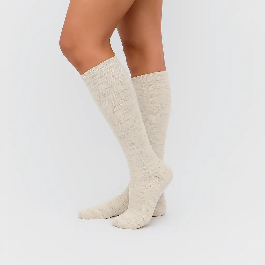 Støttestrømperne er fremstillet i en kvalitetsblanding med 60% kæmmet bomuld, som er ekstra blød og slidstærk, da de korteste fibre er fjernet under forarbejdningen. Polyester giver øget holdbarhed og formstabilitet, mens spandex sikrer en elastisk og jævn kompression, der holder pasformen vask efter vask.
