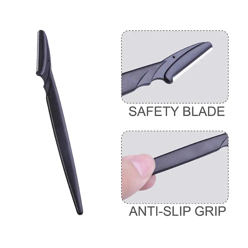 Det lette design og det skridsikre håndtag giver god kontrol under brug og gør værktøjet sikkert at arbejde med. Øjenbrynskniven er velegnet til både brynformning, trimning af overskæg og fjernelse af fine hår i ansigtet. Sættet leveres i en praktisk 3-pak, så du altid har en ekstra ved hånden.
