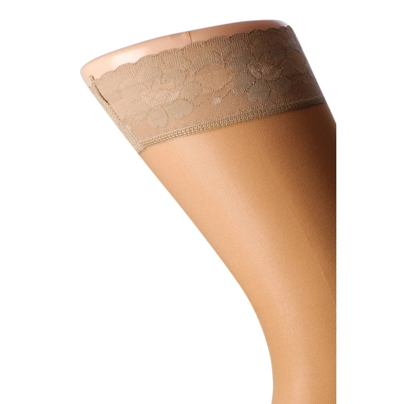 Silikonekant med blonde holder strømpen sikkert på plads