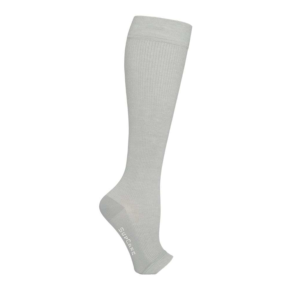 Komfortable støttestrømper i bred model med åben tå, fremstillet i blød og åndbar bambusviskose. Ideelle til dig, der ønsker effektiv støtte kombineret med ekstra komfort og bevægelsesfrihed.