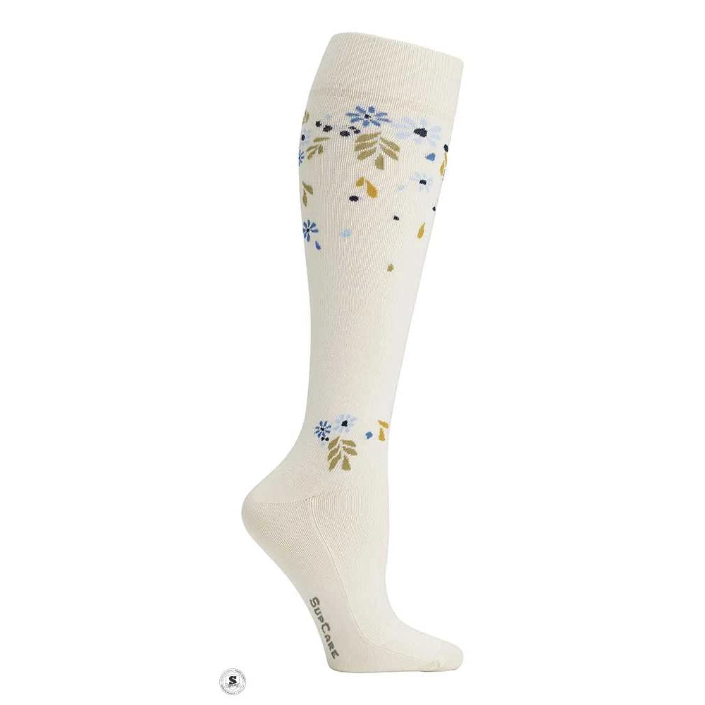 Flotte og feminine støttestrømper med blomstermønster, der kombinerer stil og funktion. Perfekte til dig, der ønsker let kompression i hverdagen uden at gå på kompromis med komfort eller design.