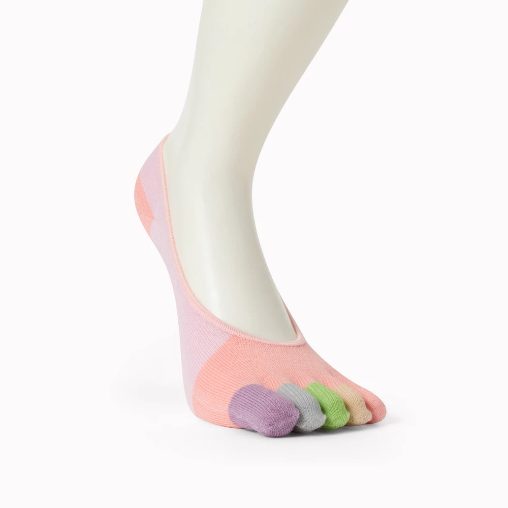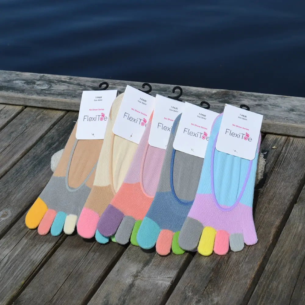 Tåsokker No-Show er de perfekte sokker, når du vil have komfort uden at de kan ses. De sidder sikkert på foden, men forsvinder i skoen - og samtidig er de farverige og smarte, når du tager skoene af. Hver tå får sin egen lomme, hvilket giver naturlig bevægelsesfrihed og mindsker risikoen for gnavesår.