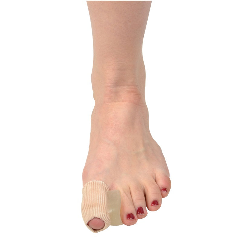 Denne tåspreder kombinerer stabilitet og komfort i én løsning. Den holdes sikkert på plads af en stoftube, som samtidig beskytter storetåen mod friktion og tryk. Indersiden er beklædt med blød silikone, der giver ekstra polstring og reducerer irritation fra sko. Kan også anvendes på andre tæer, men pasformen kan da være løsere. Hvis du oplever svie eller kløe, bør brugen ophøre, da enkelte personer kan være følsomme over for silikone.