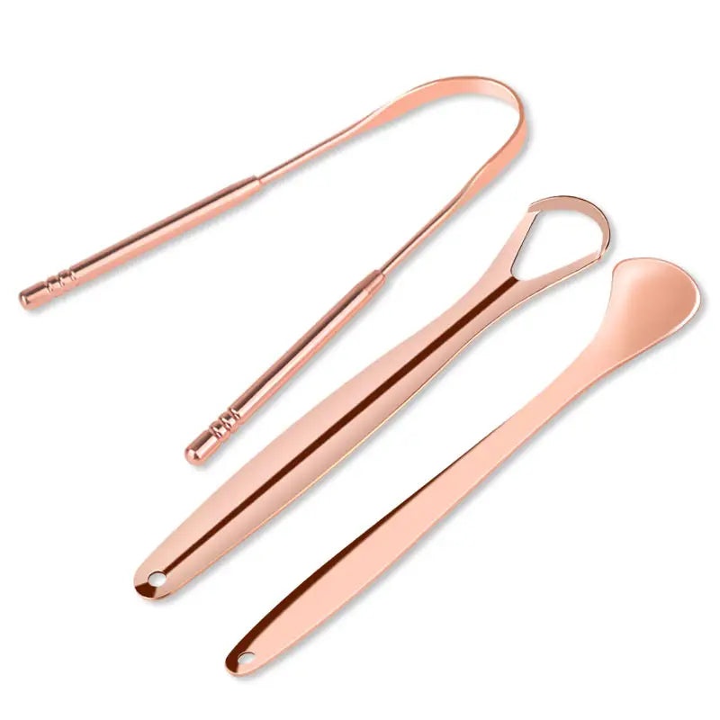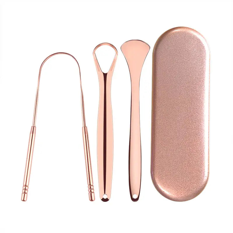 Dette komplette sæt med fire tungeskrabere i rustfrit stål giver dig en effektiv og fleksibel løsning til bedre mundhygiejne. Tungens overflade kan samle bakterier og belægninger, som ofte er årsag til dårlig ånde. Ved regelmæssig brug kan du reducere disse belægninger og opnå en friskere og renere mundfornemmelse.